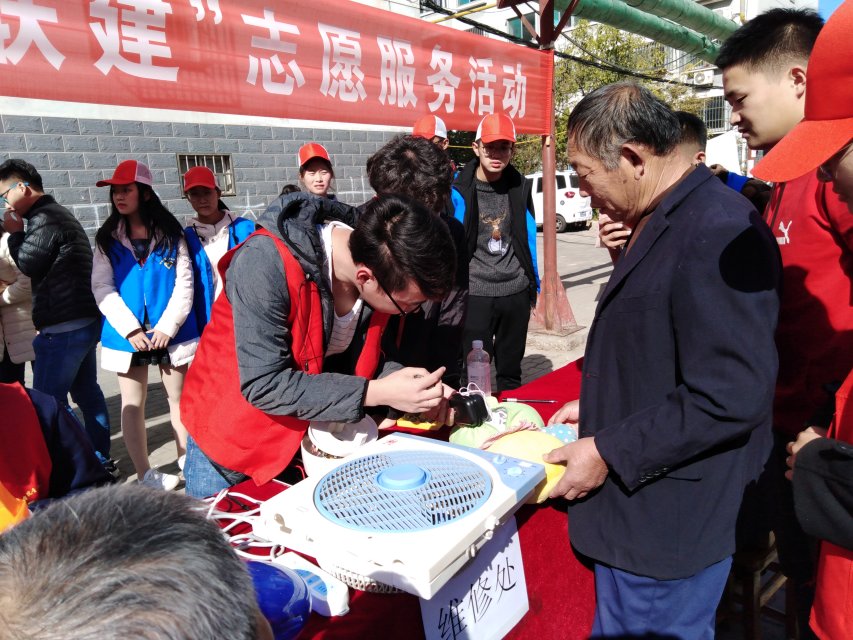 早上7点,我们全体员工会成员准时到场,按部就班准备工作。每个人都热情如火,干劲十足,搬桌子,椅子,搭帐篷,搬电脑等等,把自己所分配的任务认真耐心的完成。在活动一开始就吸引了大量居民前来询问,维修人员耐心讲解,一一作答。秋高气爽,维修成员们豪情万丈,对损坏电器认真检测、拆卸及安装。维修员人们都忙的不亦乐乎,他们在各自的战场上,挥洒着热情、倾注着努力。当看到居民们从自己手中接过修好的电器并感激时,成员们脸上挂着欣慰的笑容。一天下来,维修队接收的电脑、电扇、台灯、插排、耳机等电器多达数件,整个维修过程中,没有出现无主物品和因维修而导致损坏的物品,物品维修成功率高达90%以上,高效的完成了义务维修活动,并得到居民的一致认可。其扎实的技术和良好的服务态度受到同学们的一致认可。理论与实践相结合,提高动手能力,增长社会经验,促进综合素质的发展。义务维修使我进一步认识到知识与实践操作能力同样重要。义务维修不仅使我们将平时在公司所学的书本知识进一步深化,还增加了实际操作能力,使理论转化为实践技能,深入贯彻了学以致用的理念与思想。通过维修家用电器也找到了自己所学的专业知识和实际操作能力方面还有欠缺,充分认识到知识的重要性。
