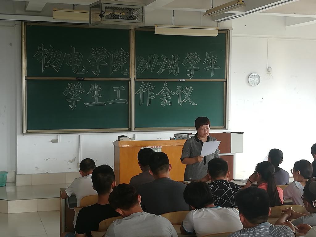 魏勇老师对新学期早晚自习及课堂上课提出了新的要求,并且重点为贫困生做了申请及助学金贷款进行详细讲解。刘毅老师对上学期工作做了重点总结,并且提出了新学期的工作目标。最后,冯琨书记对会议内容进行了总结,对迎接2017级新生工作做了详细阐述。