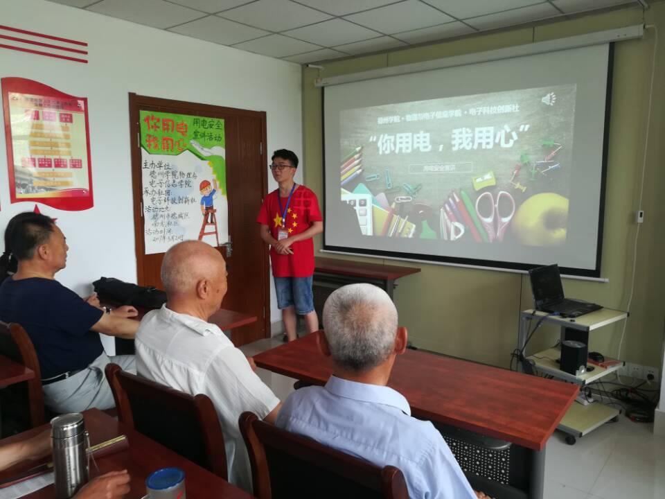 为了普及安全用电知识,增强广大居民群众的安全用电常识,提高自我防范能力,降低意外触电事故,公海gh555000aa线路检测于2017年5月20日在德城区南龙社区举办了“你用电,我用心”安全用电宣讲活动,公海gh555000aa线路检测电子科技创新社的志愿者主持了此次宣讲。