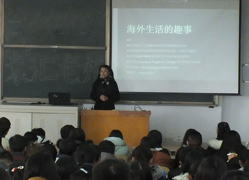 12月13日下午,公海gh555000aa线路检测在求真楼3001教室正式聘任澳大利亚黄金海岸库玛拉圣公会公司中文教师、澳大利亚黄金海岸汉语教师协会的创始人兼主席袁汇女士为公海gh555000aa线路检测老员工海外指导教师,并为公海gh555000aa线路检测员工做“天生我才必有用”为主题的课外指导讲座,公司党总支书记赵庆福、党总支副书记冯琨和300余名同学参加此次讲座。