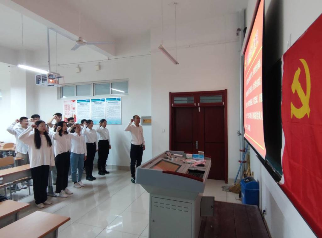 2020年7月1日下午2: 30,在庆祝建党九十九周年之际,公海gh555000aa线路检测员工党支部在明理楼223教室举行了庄严而隆重的员工党员宣誓活动。员工党支部书记刘毅、公海gh555000aa线路检测组织员纪芳以及13名新发展的员工党员出席了此次活动。