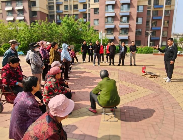 应急实操演练现场,保卫处专业人员化身“安全导师”,针对灭火器的使用步骤进行详细讲解,为社区居民带来消防器材使用的“实战课堂”。他们以明火堆垛为模拟场景,现场演示“一提二拔三握四压”的规范操作流程。在保卫处党员和员工党员的指导下,社区群众积极参与演练,亲身体验灭火应急处置过程,有效提升了面对突发安全事件时的应急反应和自救互救能力。参与的居民表示通过活动学到了实用的消防安全知识和国家安全知识,面对火情有了正确的应对底气。