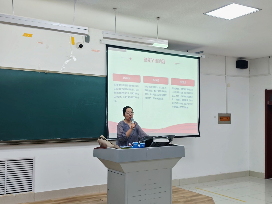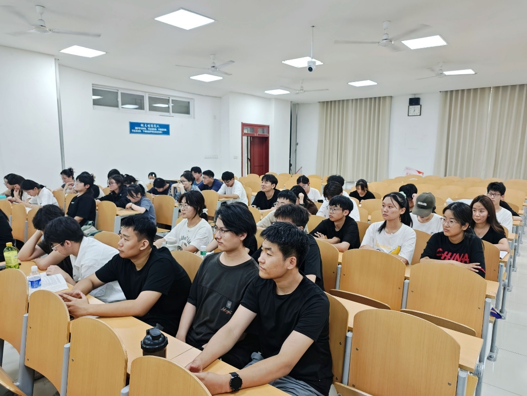 课堂上,贾冉以“教育方针的时代内涵与青春践行”为主线,从五个维度层层递进。她紧扣“培养德智体美劳全面发展的社会主义建设者和接班人”这一根本目标,结合党史、新中国科技发展史中的鲜活案例,特别是老一辈科学家如钱学森、郭永怀等“干惊天动地事,做隐姓埋名人”的感人事迹,深入阐释了“为谁培养人、培养什么人、怎样培养人”这一根本问题。她强调,党的教育方针是指引青年成长的“定盘星”,物电学子必须深刻领会其精神实质,将个人理想自觉融入国家发展伟业,将爱国情、强国志转化为科技报国的切实行动。面向未来,她提出三点期望: 一是要坚定理想信念,筑牢精神之基,做党的创新理论的坚定信仰者和忠实践行者;二是要练就过硬本领,投身创新实践,在实验室里坐得住冷板凳,啃得下硬骨头;三是要砥砺意志品格,勇担时代重任,将个人价值的实现与国家民族的命运紧密相连,以“强国有我”的担当,在科技自立自强的赛道上奋力奔跑,交出无愧于党、无愧于人民、无愧于时代的青春答卷。