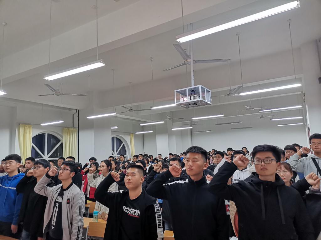 2019年11月8日晚,为深入学习习近平总书记系列重要讲话精神,践行“一学一做,即学习总书记讲话,做合格共青团员”的教育实践活动。公海gh555000aa线路检测团总支带领2018、2019级各团支部在明理楼举办了“重温入团仪式”活动。活动采用录像方法记录活动过程,活动包括唱国歌、团歌,宣誓团员誓词,宣读团员权利和义务,团旗,团徽的制作、使用和管理方法,团歌的使用和管理方法等以及观看入团视频。