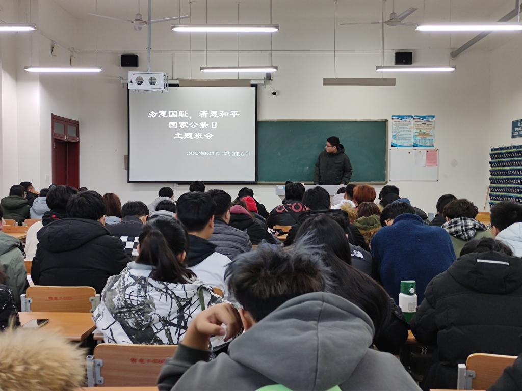 为引导同学们勿忘国耻,牢记历史,公海gh555000aa线路检测于12月13日在全院范围召开以“国家公祭日”为主题的主题班会。本次班会由各班班长主持,各班全体同学参加了此次班会。