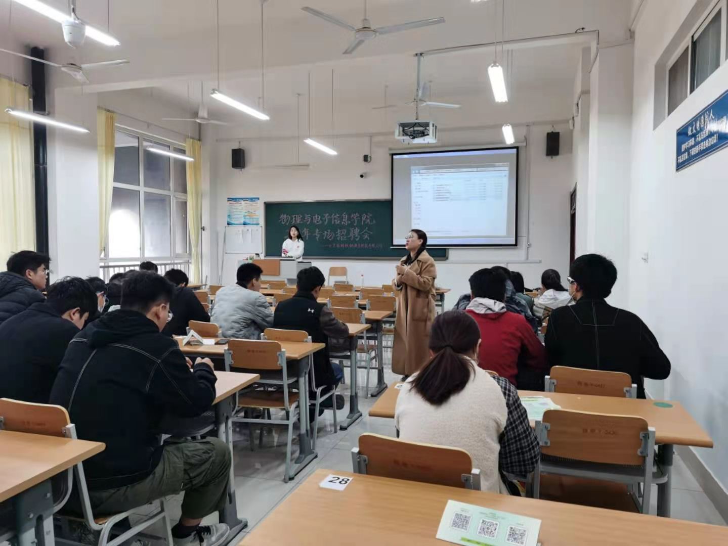 会上,核桃编程HR通过播放宣传片、PPT展示、面对面交流等方式详细介绍了行业与公司发展历程、工作地点、岗位需求、就业市场形势、薪资情况、未来规划等基本情况。工作地点主要集中在济南、西安、武汉、成都四个城市。岗位需求主要招聘课程导师、班主任、社群运营实习生等众多岗位。同学们与HR积极互动,全方位了解了公司基本工作问题。会后,核桃编程招生负责人于0223面试了投递简历的同学。