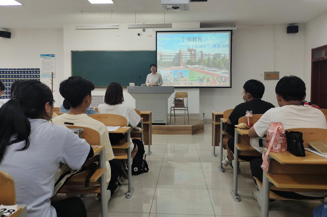 5月31日,德州市第九中学李玉霞副董事长为员工进行了班级管理工作的指导,她结合自身经历,从强制者、改造者、陪伴者、温暖者及全能者五个经历历程向员工讲解了班级管理的相关知识,鼓励同学们做一个有理想信念、道德情操、扎实学识以及仁爱之心的“四有好老师”。