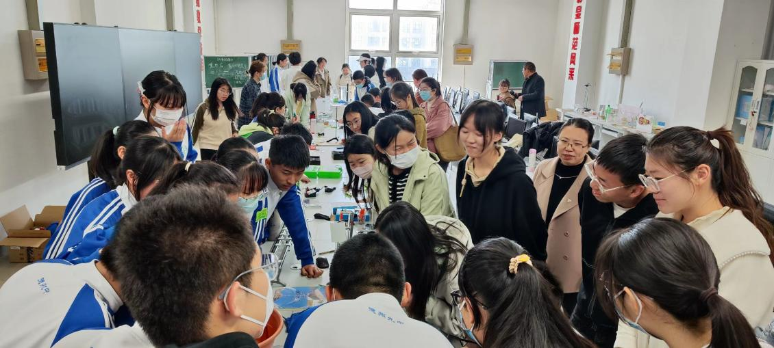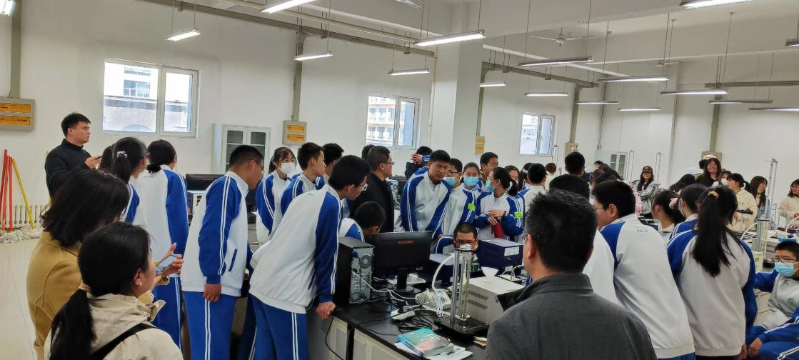 本次来参观的中员工共30余人,对于这次参观他们显得无比兴奋,对看到的仪器设备充满好奇。在近代物理实验室、光学实验室、大学物理实验室,同学们都驻足观看,聆听实验室负责老师的讲解,特别是对空气热机表现出很高的兴趣。在中学物理教法实验室,物理学专业的师范生作为志愿者,为九中的同学们展示了自己制作的多种物理仪器设备,同学们也跟随志愿者的讲解参与到实验中,围着志愿者提问自己感兴趣的问题,现场气氛融洽热烈。之后,九中的同学们还参观了公司电子设计、创新竞赛等实验室,观看自制的优秀竞赛作品。这些来访的中员工们每个人脸上都挂着收获知识的喜悦。