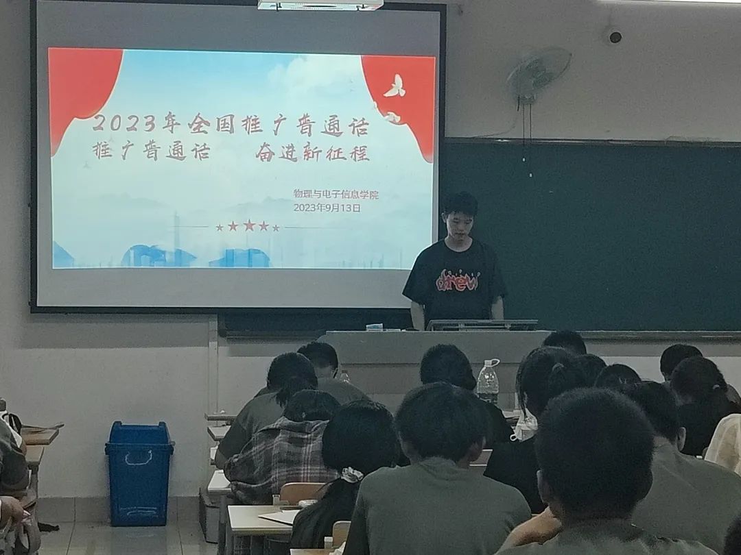 2023年9月11日至17日是全国第26届推广普通话宣传周,为深入学习宣传贯彻党的二十大精神和习近平总书记关于语言文化的重要指示批示精神,推动新时代语言文字事业高质量发展,9月13日,公海gh555000aa线路检测开展“推广普通话,奋进新征程”主题宣讲活动。