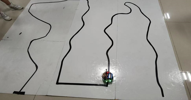 本次比赛为三人一组,比赛循迹共包括两种地图类型,一种是单向循迹定点停车地图,另一种为山东地图。员工提前利用一周的时间组内分工合作完成小车组装,硬件电路焊接,程序编写及调试等步骤。比赛过程中指导老师根据能否正常循迹、循迹过程是否出现脱轨、循迹时长,能否显示路程和时间,是否可定点停车,有无附加功能等标准进行打分并评选出一二三等奖。