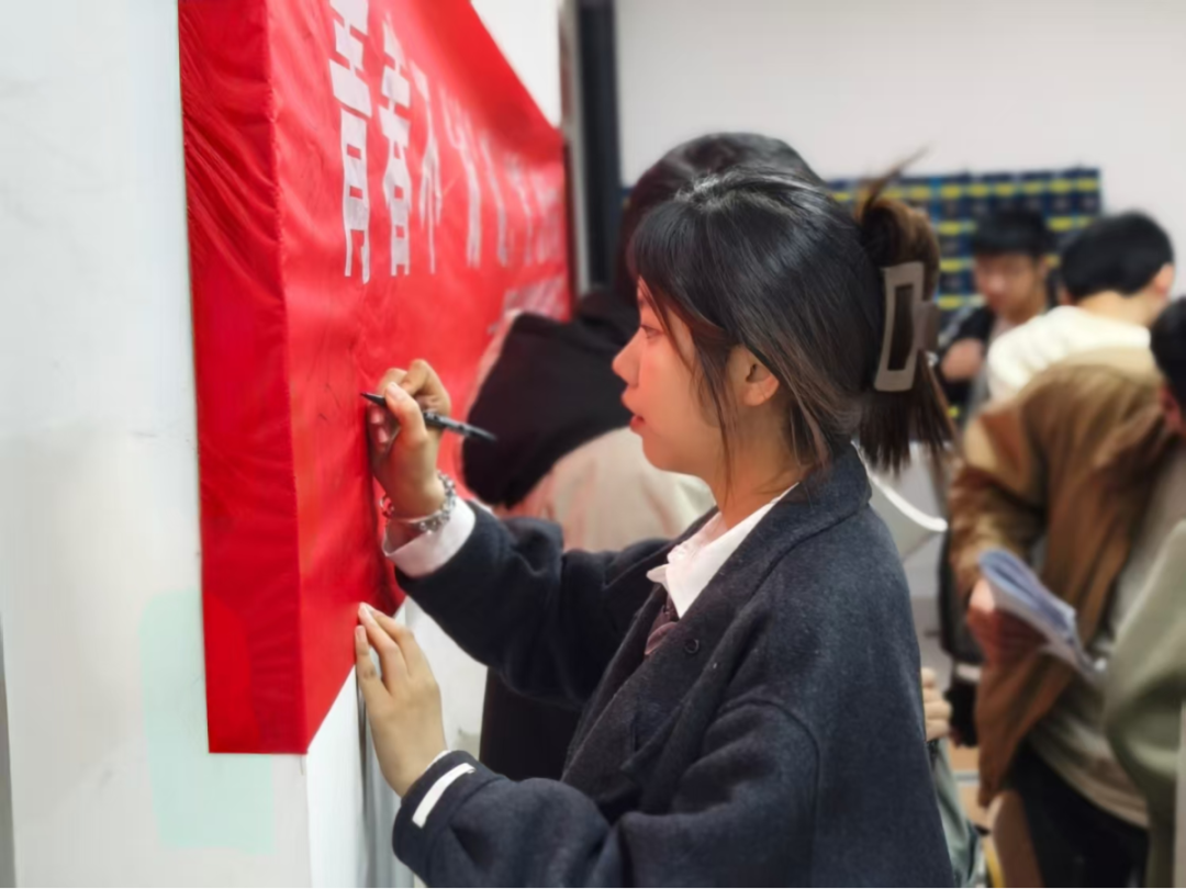 分享环节结束后,同学们结合电子信息工程专业特色,分组讨论了诚信理念在专业学习、科创实践及未来工作中的体现与重要性。赵老师对不诚信案例进行分析,以学术不断、网络谣言等社会案例警示同学们“失信者寸步难行”。班会还设置了诚信手抄报及诚信摄影展示,鼓励员工以创意表达对诚信的理解。最后,员工们认真签署诚信承诺书,并由赵老师领誓进行“诚信宣誓”,承诺“内诚于心,外信于人,从学业到生活践行诚信准则”。班会结束后,同学们纷纷在诚信横幅上签名,信诺留痕,留下对诚信的坚定承诺。