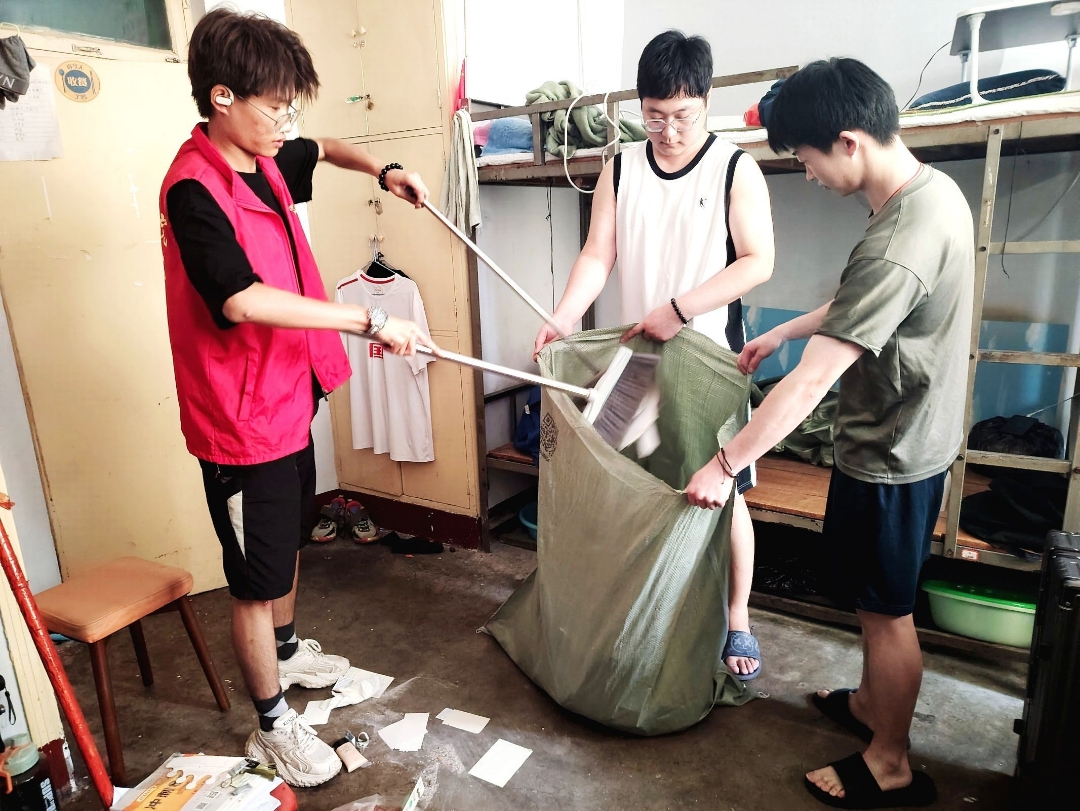 活动期间,毕业生们以宿舍为阵地,掀起一场“断舍离”与“焕新颜”的行动热潮。各宿舍成员分工协作,将书籍、衣物、生活用品等分类整理,将仍具使用价值的物品则通过公司与公益组织合作的渠道,捐赠给有需要的群体。在物品流转的同时,宿舍清扫工作也如火如荼展开,毕业生们手持清洁工具,对门窗玻璃、床铺柜架、卫生间等区域进行深度清洁。原本略显杂乱的宿舍,经过毕业生们的精心打理,变得窗明几净、井然有序,同学们相互协作、默契配合,展现出高度的集体凝聚力与奉献精神。校园里,那一个个忙碌的身影,不仅美化了校园环境,更彰显了新时代老员工的青春风采与文明素养,成为毕业季里一道独特而温馨的风景线。
