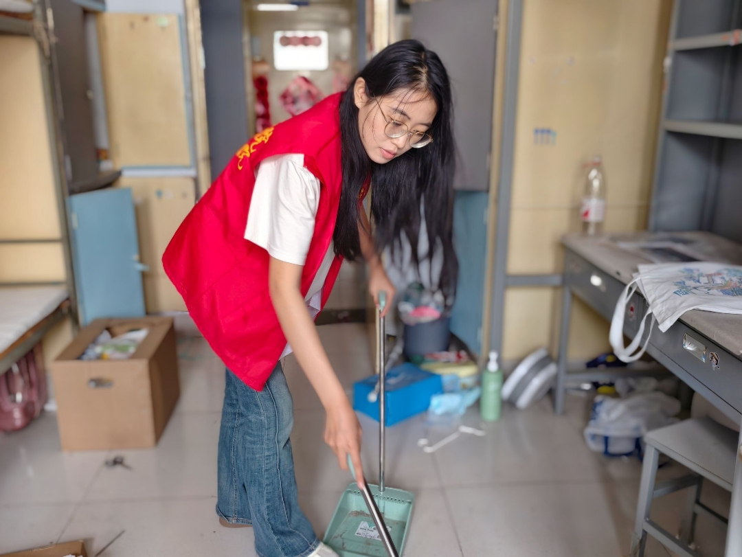 由员工党员、员工干部组成的“先锋志愿服务队”主动承担起公共区域的清扫任务,同时协助完成物资清点、运输等工作,并对活动流程进行全程记录,以严谨细致的服务保障活动圆满完成,赢得师生广泛点赞。