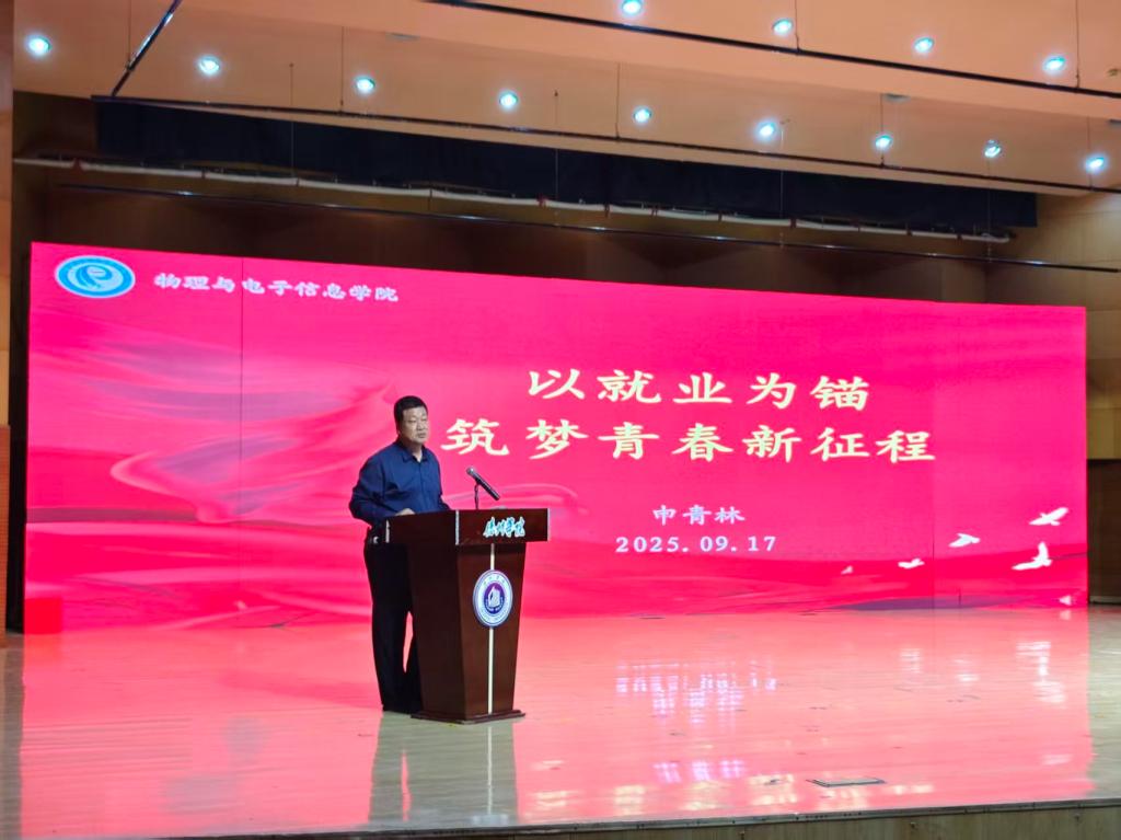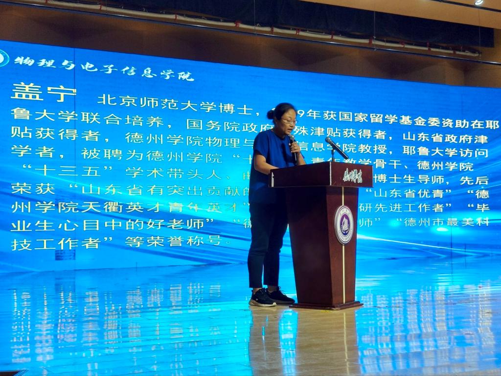 “如何做有责任担当、有家国情怀的新时代老员工?”国务院政府特殊津贴、山东省政府特殊津贴、山东省有突出贡献的中青年专家、德州市“最美科技工作者”盖宁教授向新生分享了自己的成长经历和教学经验,解读物理与电子信息领域的重要性,强调其推动科技革命与产业变革,并对新生提出五点期望:一是以大学为新起点,学会独立;二是胸怀担当与家国情怀,将个人成长与国家需要相连;三是勇于探索未知、突破认知;四是以实践与创新为成长钥匙;五是肩负责任使命,成为时代所需人才,助力新生明确成长方向。