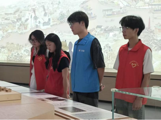 宣讲团首站抵达中国运河文化博物馆。展厅内,运河开凿的沧桑历程、漕运商贸的繁荣盛景,通过详实史料、珍贵文物与生动场景复原徐徐铺展。志愿者们漫步其间,在感受运河文化滋养齐鲁大地的深厚底蕴时,更着力挖掘历史传承与精神谱系的内在联结。运河先辈“逢山开路、遇水架桥”的开拓魄力,与“两弹一星”元勋们冲破外部技术封锁、自主攻坚的坚毅勇气,在跨越时空的奋斗叙事中形成强烈共鸣。驻足古船模型前,成员们从运河贯通南北的协作智慧中,深切体悟到“两弹一星”研制历程中“大力协同、无私奉献”的精神内核。这场跨越千年的精神对话,为宣讲团的红色宣讲注入了历史厚度,让古老文明与时代精神在青春视角下实现了同频共振。