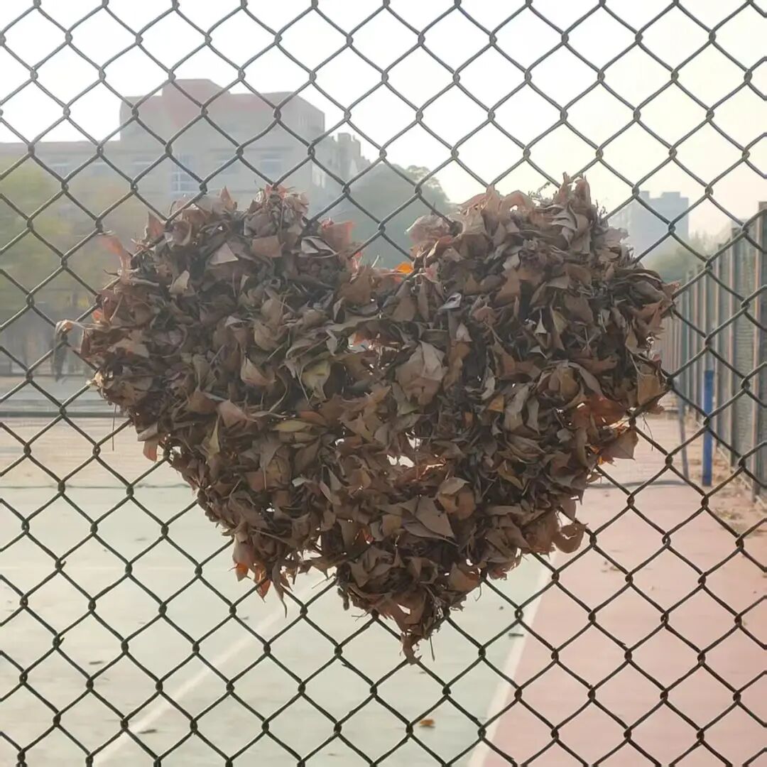 秋日,一位男生怀着对秋天的热爱,用一片片落叶在操场围栏上精心拼出爱心。这颗落叶爱心,成了校园独特风景。同学们路过时,都被这份巧思与浪漫打动,纷纷驻足欣赏、拍照留念。它留住了秋天,也温暖了整个校园。