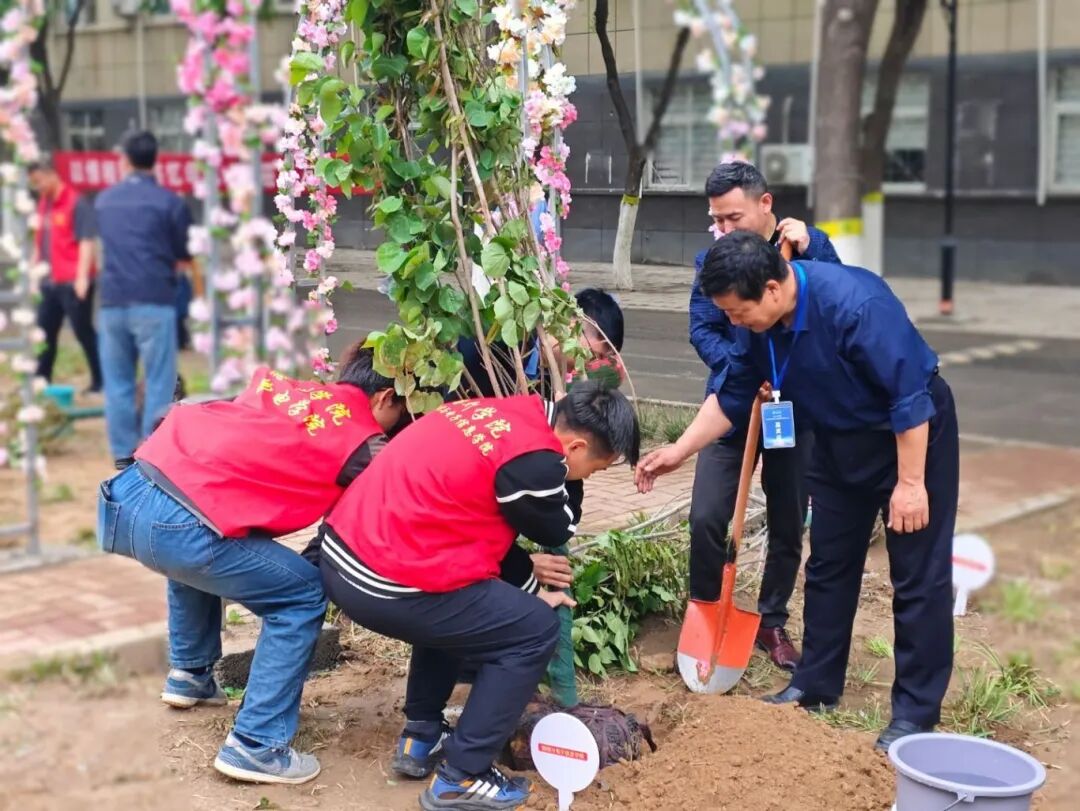 在5月9日,校园开展了毕业生返校活动,返校的毕业生在在校生的带领下一同进行了植树活动,在植树的过程中书记也来帮忙与大家一同植树,这张照片记录下了此刻的温馨时光。