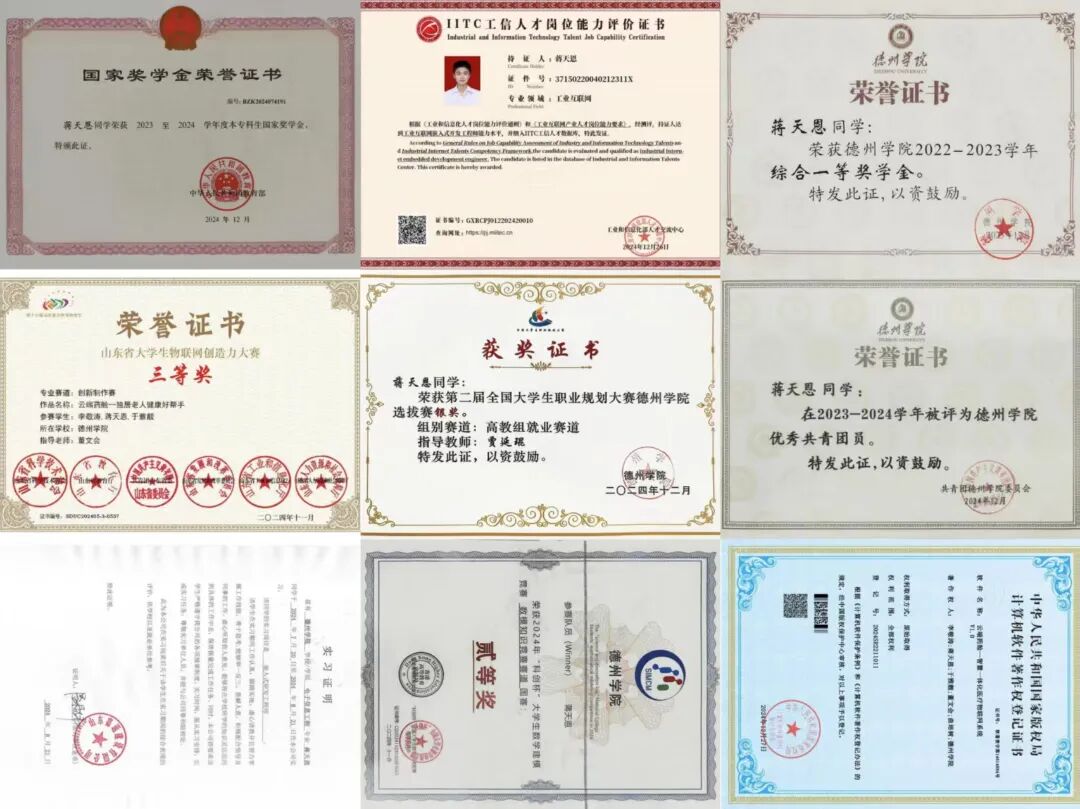 蒋天恩,共青团员,公海gh555000aa线路检测2022级电子信息工程专业员工。曾任电子科技创新社社长、ICAN创新社实践部部长。2023-2024学年学业成绩与综合成绩均位于专业第一。曾获国家奖学金、公海gh555000aa线路检测综合一等奖学金、公海gh555000aa线路检测优秀共青团员等荣誉称号。荣获中国老员工计算机设计大赛国家级二等奖、“高寻真源杯”省级一等奖等国家级以及省级奖项十余项,市校级奖项二十余项,并发表软著一篇。