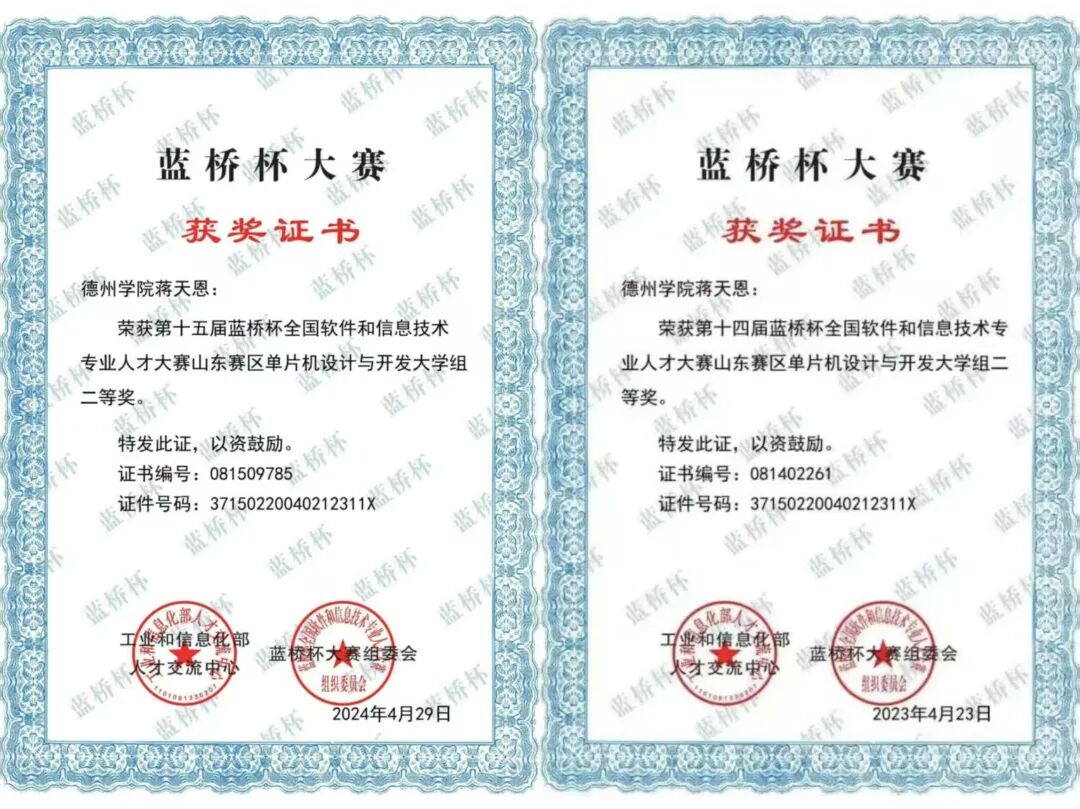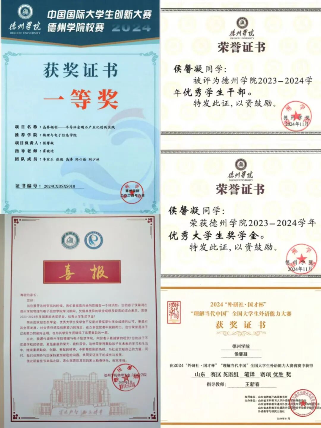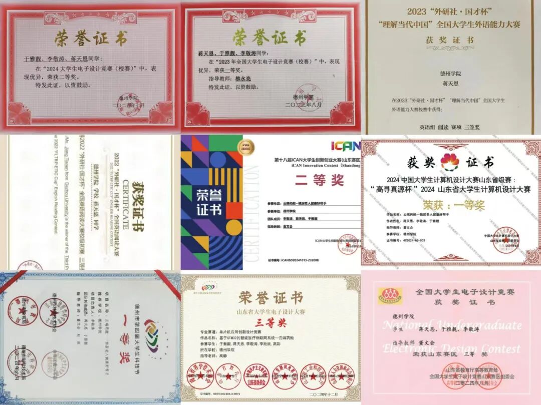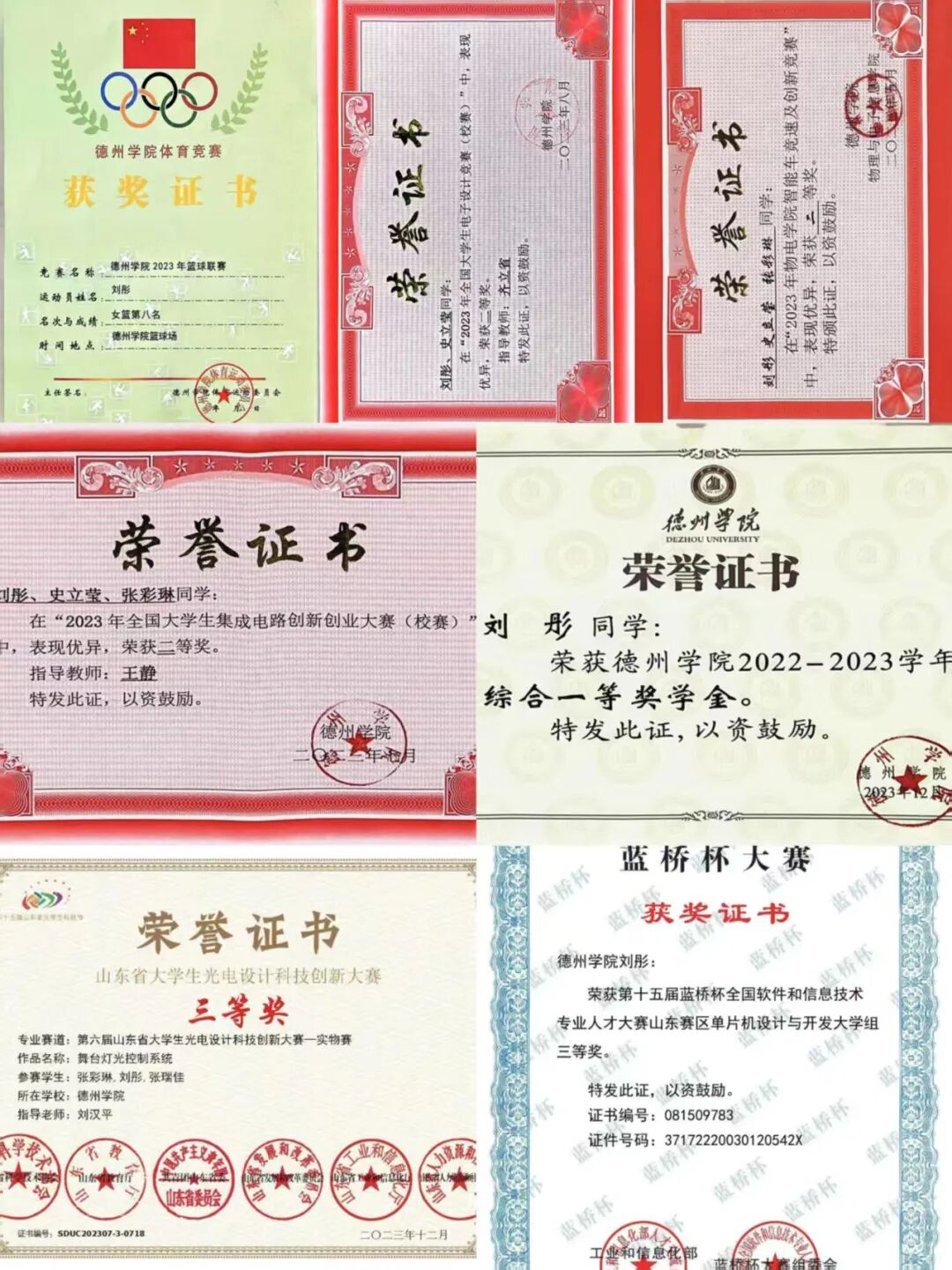 2023-2024学年学业成绩与综合成绩均位于专业第二名,平均学分绩点为4.07。曾获2023-2024省政府奖学金,公海gh555000aa线路检测综合一等奖学金,优秀共青团干部等荣誉称号;第十五届蓝桥杯单片机大赛三等奖,山东省光电设计科技创新大赛三等奖,2023年全国老员工集成电路创新创业大赛校赛二等奖,2023年全国老员工电子设计竞赛校赛荣获二等奖,公海gh555000aa线路检测 2023 年篮球联赛女篮第八名荣誉。