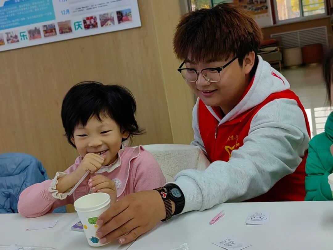 活动前期,志愿者团队提前与社区精准对接,精心筹备实验器材与材料。活动现场,“弹跳纸杯”“会飞的纸片”“水吸乒乓球”三项趣味科学实验依次精彩呈现。志愿者们采取一对一指导的方式,耐心引导孩子们亲手操作实验器材,让大家在动手实践中沉浸式感受科学的奇妙魅力。通过志愿者通俗易懂的生动讲解,孩子们逐步解锁气压、浮力等科学原理,在趣味探索中收获知识与快乐。活动临近尾声,志愿者鼓励孩子们主动分享实验收获与心得体会,现场互动踊跃、氛围热烈,充分展现了孩子们对科学的浓厚兴趣。