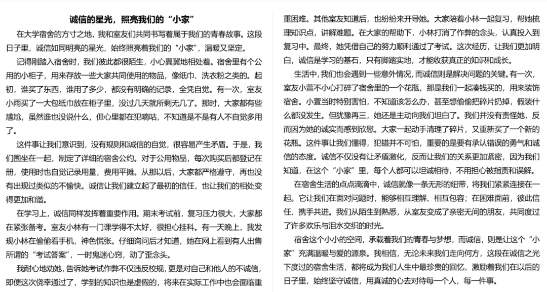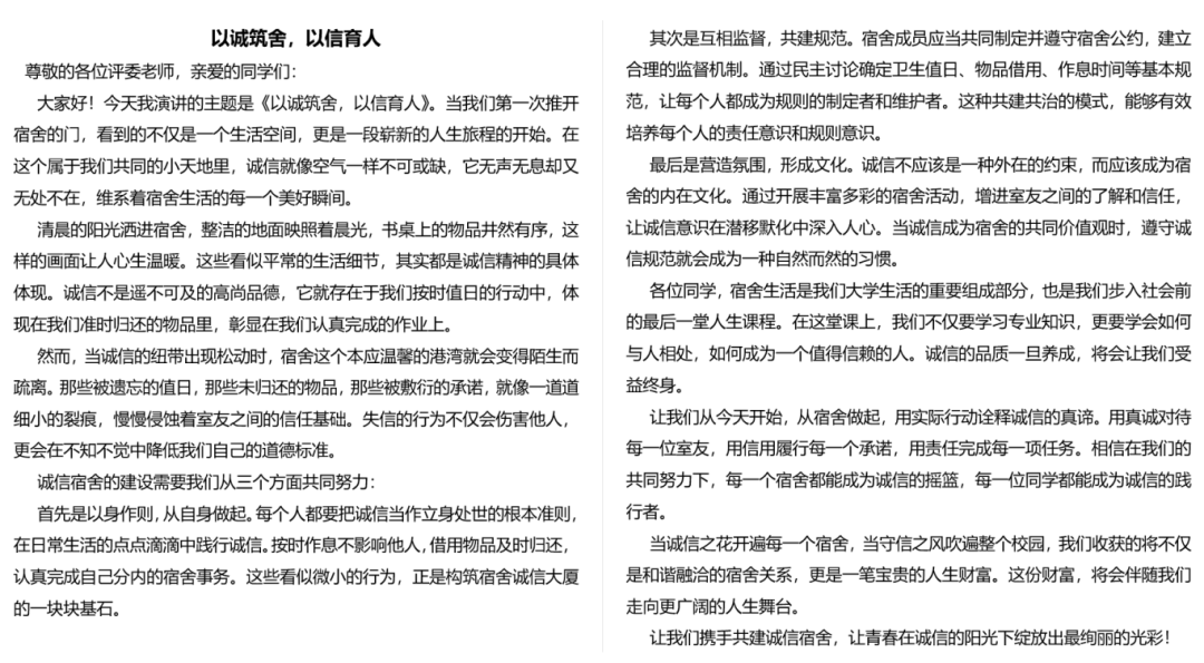 诚信践行的千万种模样,每一种都是从心出发的责任坚守。希望大家都能真诚地守护诚信与热爱宿舍生活,构筑最温暖的集体!此次活动的开展,为同学们搭建了一个展现诚信内涵、激发创新活力、营造和谐氛围的舞台,相信在此次活动的倡导下,公海gh555000aa线路检测的学子们将更珍视诚信价值,以更饱满的热情共建文明校园。