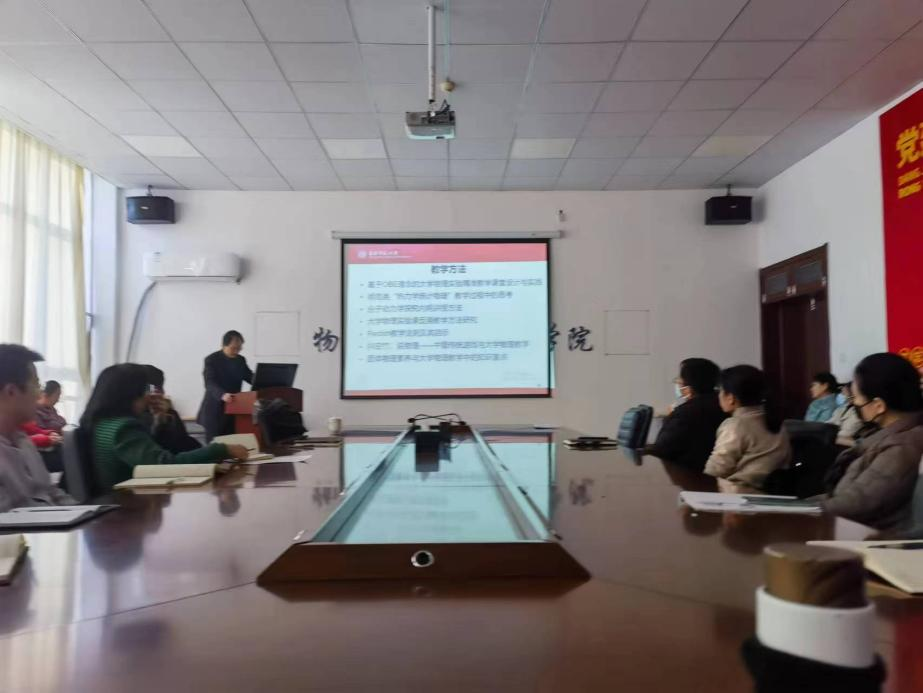 潘苏东教授以“谈高校物理教师的教学研究”为题作了学术报告。报告中潘教授从教研研究背景、课程建设、课题申报、教研论文撰写和教学成果奖申报五个方面,结合具体案例以通俗易懂的方式给公司教师阐述了高校教师应如何开展教学研究,如何把教学研究与个人的教学、科研等紧紧联系在一起。报告结束后,潘苏东教授与参会老师进行了互动,就大家提出的相关问题给予了耐心细致的解答。