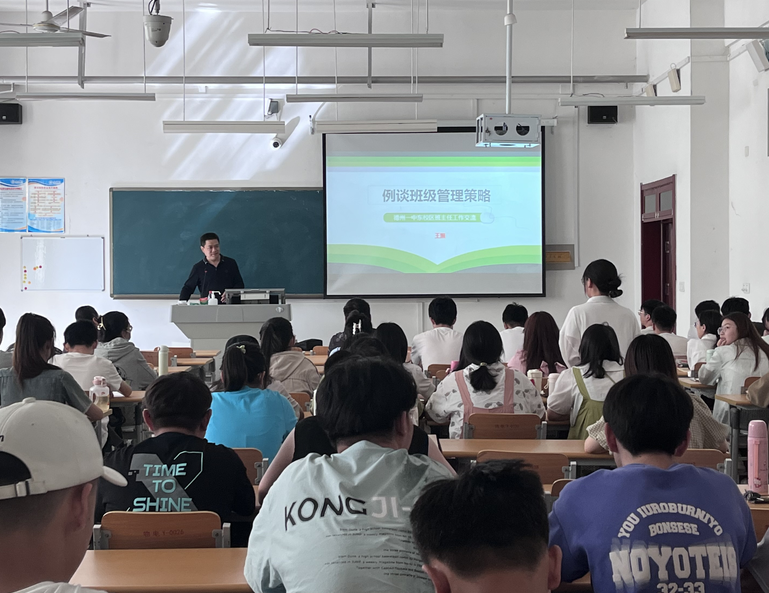 5月13日物理学专业邀请了德州市第一中学高一年级主任、山东省优秀班主任、齐鲁名班主任王振老师针对中学班级管理对物理师范生进行了指导。王振老师结合自身经历,从树威信聚人心、洒爱心得人心、立规矩浸人心、以惩戒磨人心、会激励动人心、勤疏导暖人心六个方面向员工讲解了班级管理的相关知识,鼓励同学们做一个有理想信念、道德情操、扎实学识以及仁爱之心的“四有好老师”。