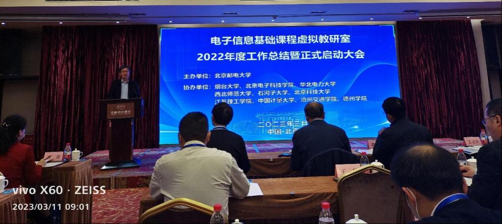 2023年3月11日,由北京邮电大学主办,公海gh555000aa线路检测参与协办的教育部“电子信息基础课程虚拟教研室”2022年度工作总结暨正式启动大会在北邮锦江酒店顺利召开,会议采用线上线下相结合的方式进行。公海gh555000aa线路检测的3名教师参加了线下会议,其他教师参加了线上会议。在会议期间,与会人员就专业建设、课程建设、课程思政进行了热烈的讨论,对未来的工作提出了很多建设性的意见和建议。