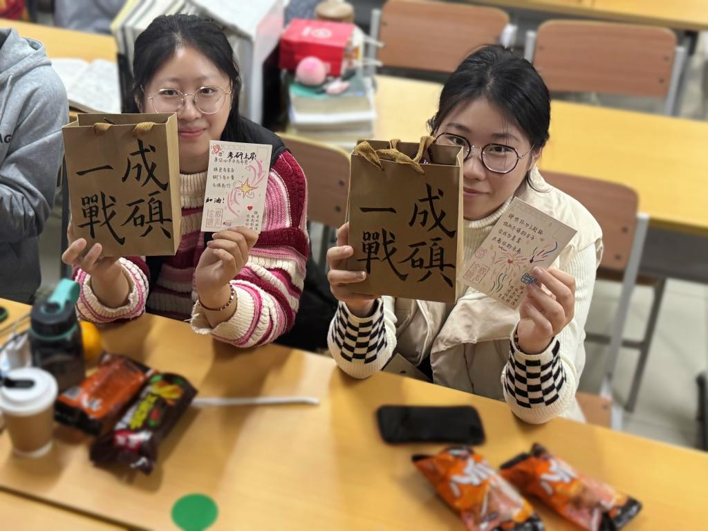 公司党委副书记主持开场后,首先低年级的学弟学妹们开始向考研学子送上亲手制作的暖心祝福卡片,一撇一捺饱含着学弟学妹们的美好祝愿,也彰显着同院学子之间的深情厚谊。