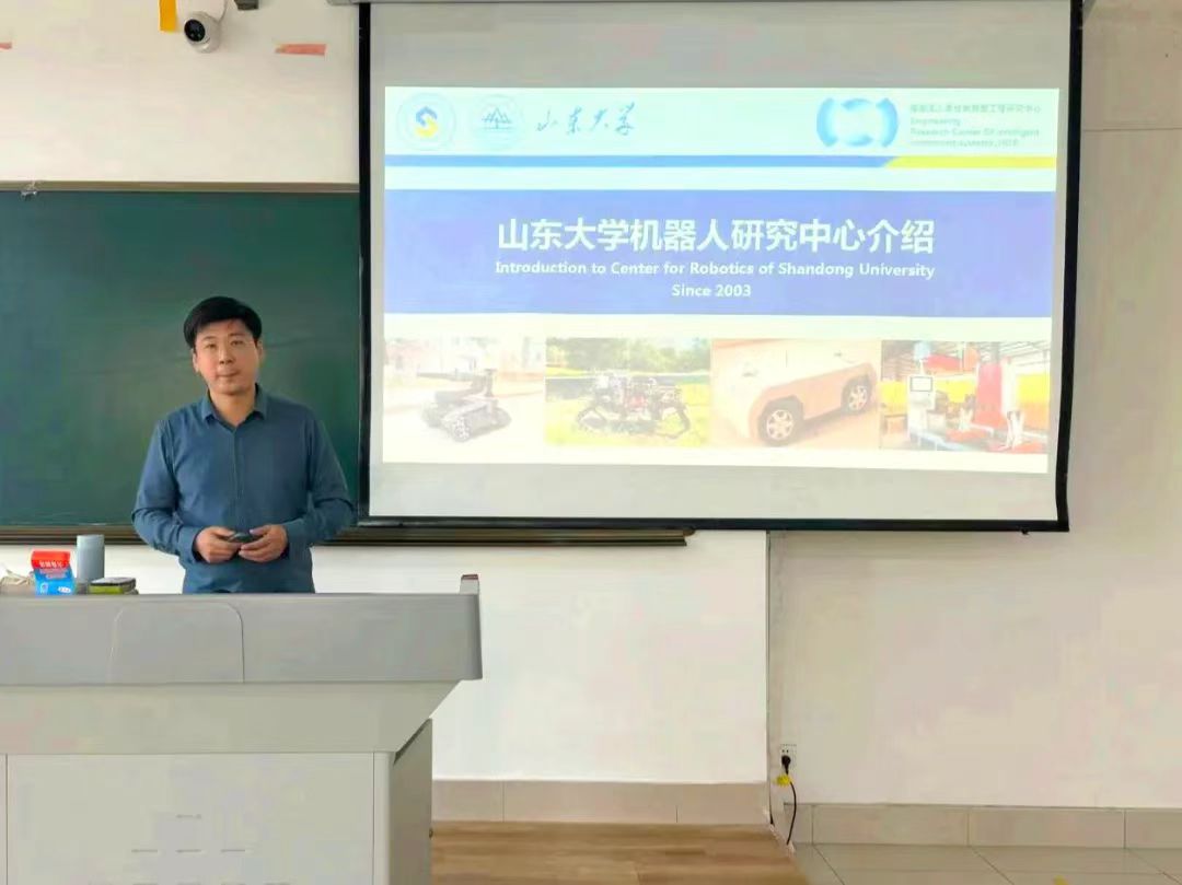 活动中,山东大学机器人研究中心负责人首先介绍了中心的学科基础、本科专业、科研平台、科研团队以及科研成果。他提到,山东大学机器人研究中心拥有一支由资深教授、青年学者和优秀研究生组成的科研团队,他们在自主导航、智能交互、智能制造等领域具有深厚的学术背景和丰富的实践经验。多年来,该团队致力于推动人工智能与机器人技术的创新与应用,取得了多项令人瞩目的科研成果,并在实际应用中实现了技术的转移转化。