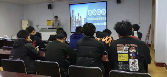 在招聘会现场,招聘单位采取了播放宣传片、PPT文档介绍、面对面交流等方式同学们介绍了公司简介、公司布局、公司发展历程等方面。最后针对同学们提出的疑惑,公司相关人员一一作了解答,同时对员工进行了现场面试。