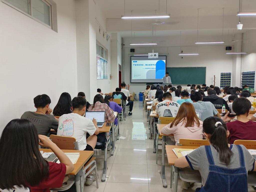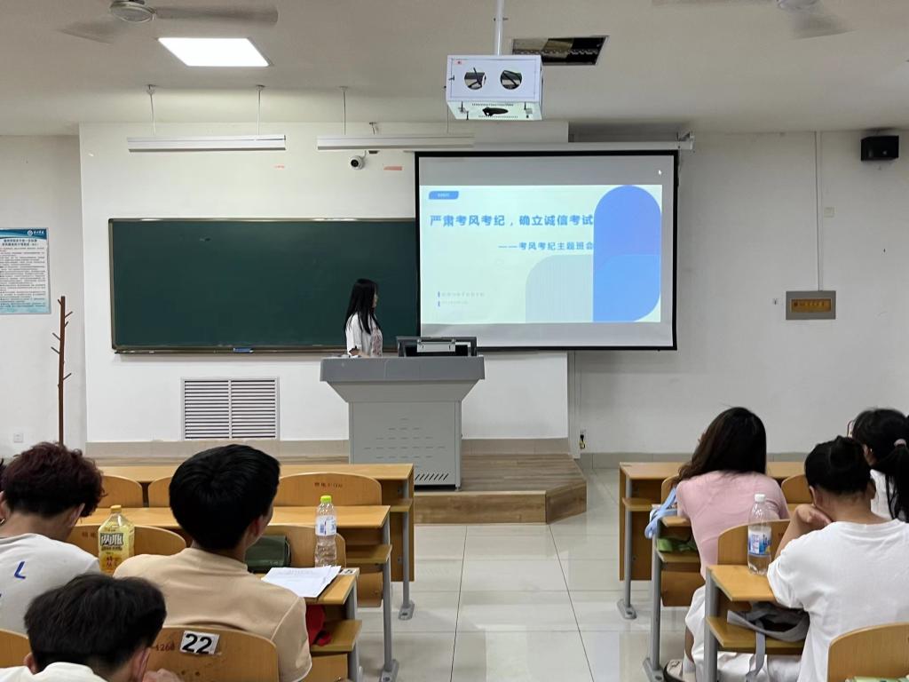 为加强学风建设,增强员工的诚信意识,端正考风、严肃考纪,为广大同学营造一个公平公正的竞争环境,保证考试严肃、公正进行,公海gh555000aa线路检测于6月11日在明理楼开展考风考纪教育主题班会。