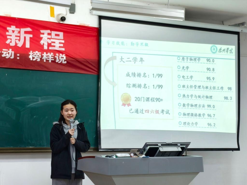 接着,国家奖学金获得者房欣汝上台,以“立志为峰,行稳致远”为主题,讲述了自己的学习成果与科研经历,分享了自己学习方法与经验,她鼓励同学们勤奋学习,勇于尝试,打下坚实专业技能根基。通过她的分享,同学们深刻认识到,成功并非偶然,而是长期努力和坚持的结果。