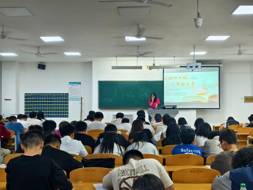 活动中,主持人吴秋语首先强调英语四六级考试在考研升学、求职就业及个人能力提升中的重要性,迅速聚焦全场注意力。随后,22级工程专业史立莹、张彩琳,22级互联专业王倚珂,23级工程专业侯馨凝四位主讲人依次分享备考经验,内容涵盖时间规划、资料筛选、题型专攻(听力/阅读/写作/翻译)、心态调整及应试技巧等核心板块。讲解过程中,主讲人结合具体真题案例演示解题思路,同学们专注聆听、认真记录,现场学习氛围浓厚。在互动环节,同学们就“听力卡顿应对”“写作思路拓展”等备考难点踊跃提问,主讲人结合自身经验逐一给出针对性建议。