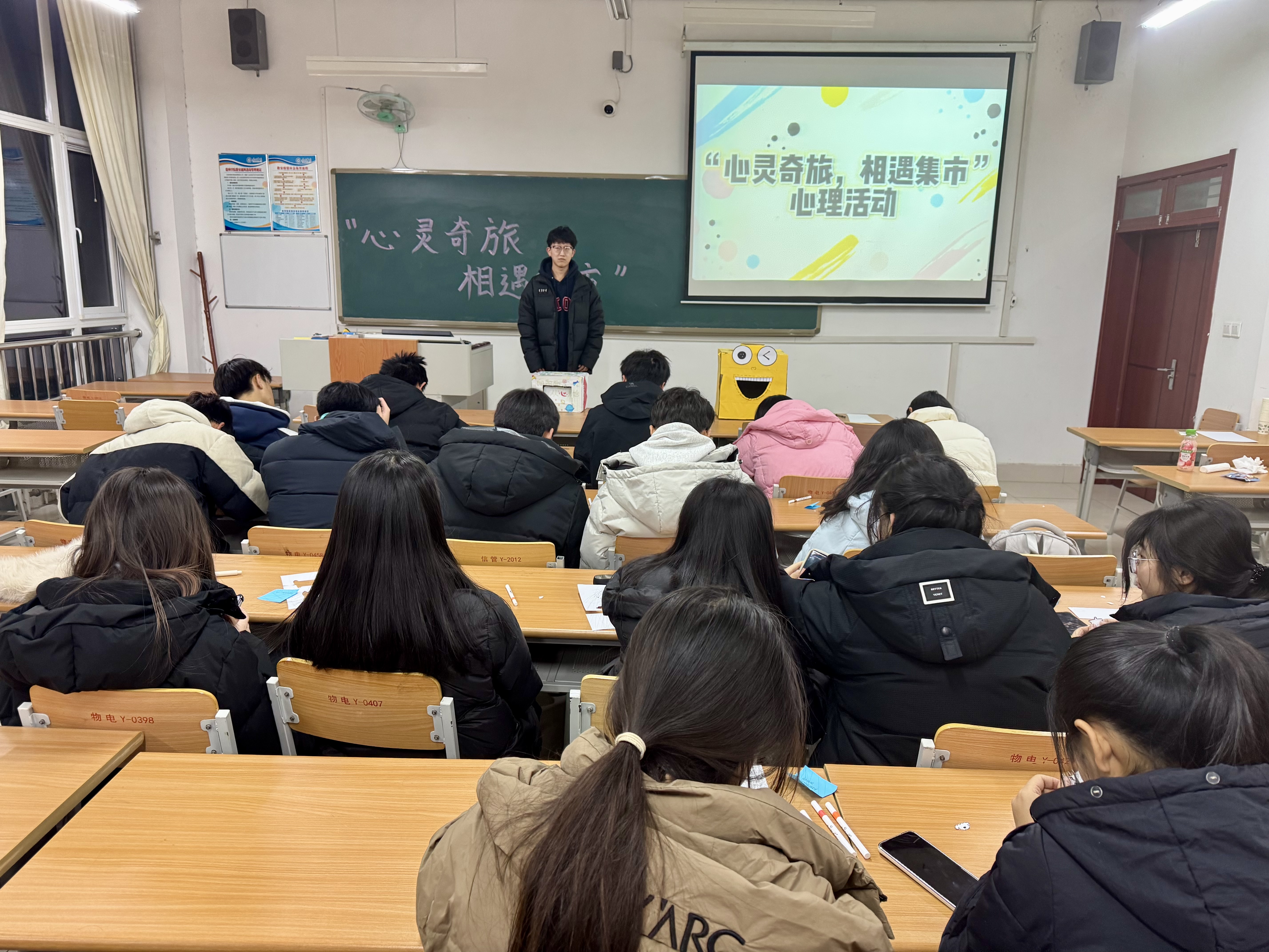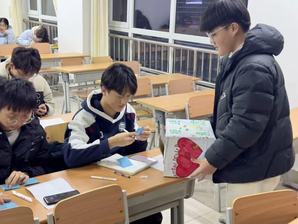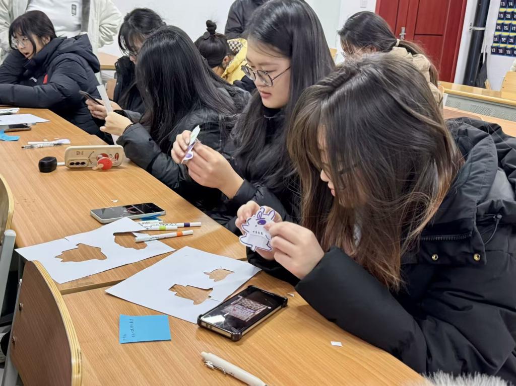 活动现场设有交换盲盒与小狗集市两大特色区域。交换盲盒区,同学们写下焦虑烦恼贴于展板,再抽取安慰盲盒中的鼓励便签,以温暖话语驱散坏情绪;小狗集市则准备手工材料,参与者动手制作纸小狗,写下心里话、愿望或祝福,让其成为心灵陪伴。主持人还通过心理咨询技巧,帮助同学们更好地认识自我、理解情绪,并传授了应对学习压力的有效方法。在主持人的引导下,同学们不仅学会了如何调整自己的心态,还学会了如何与他人建立良好的人际关系,为未来的学习和生活打下了坚实的基础。