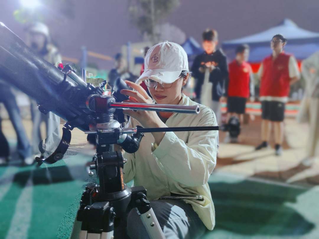 考虑到部分员工因故不能回家过节,公司天文社在9月16日夜晚特意为留校生组织了一场别开生面的天文望远镜赏月活动。在校园操场上,同学们一同通过天文望远镜观测那轮明亮的满月,感受宇宙的浩瀚与奇妙。