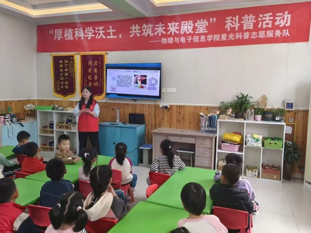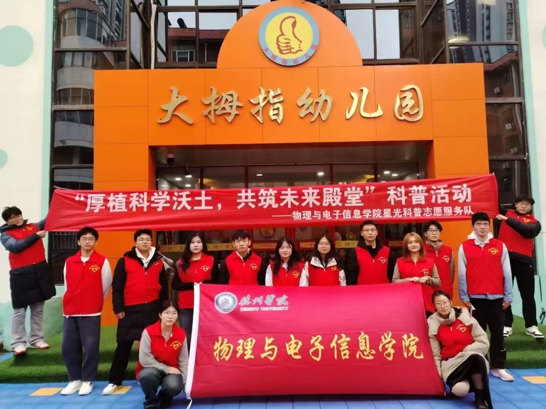 为深入实施全民科学素质行动,发挥物理基础学科特色,弘扬志愿服务精神,11月26日,公海gh555000aa线路检测“星光”科普志愿服务队23互联本二团支部于德州市大拇指幼儿园开展“乘科技之舟,逐成长之梦”科普活动。