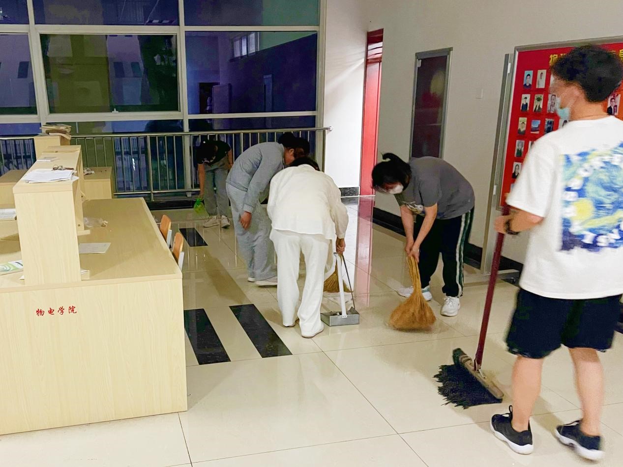 活动开始时,志愿者们按照既定工作安排,带好扫帚、拖把、抹布等卫生工具,在已划分好的卫生区域内,对地面、修读点桌面进行了整理清洁。在志愿者们的认真工作下,明理楼公共卫生区焕然一新。
