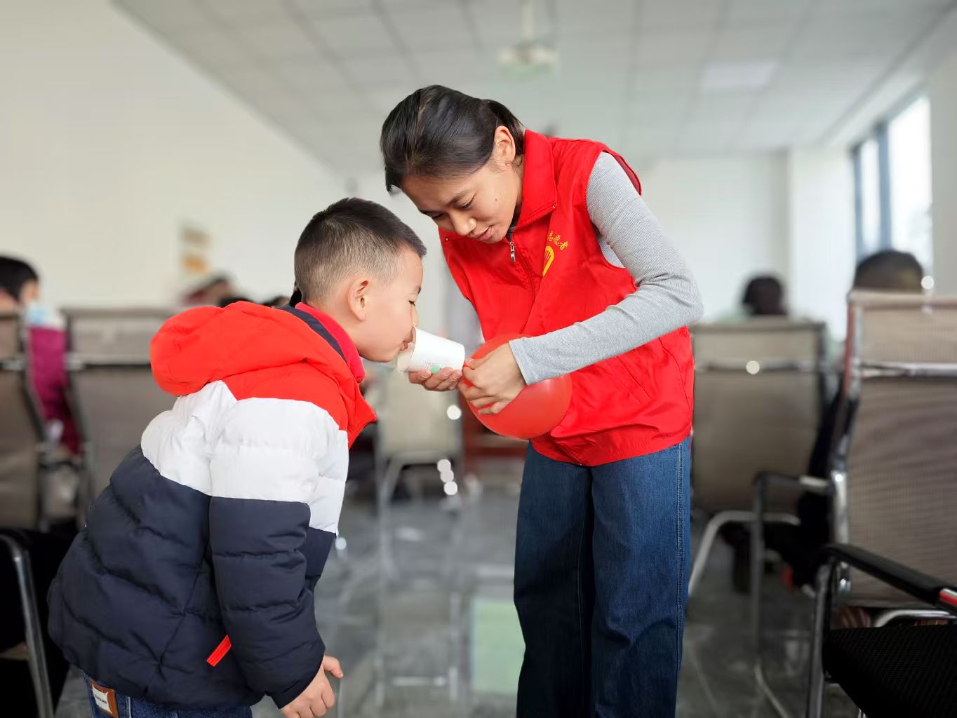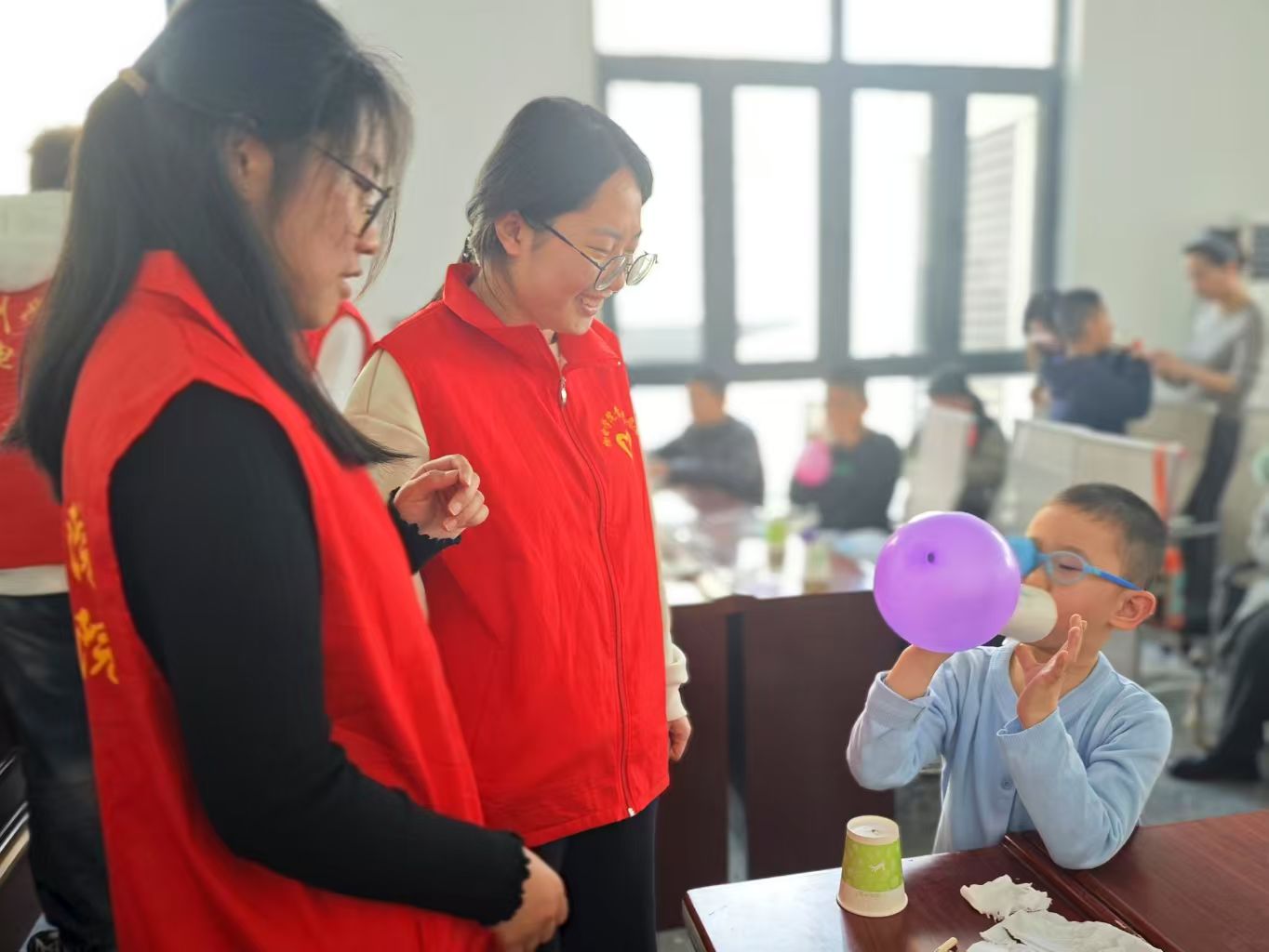 活动中,志愿者们以力学与电学为主题,为小朋友准备了“旋转的纸片”和“气球飞行器”的科学实验材料。志愿者耐心引导小朋友们自主完成实验,针对小朋友们的疑问进行细致解答,让小朋友们在实践中锻炼科学思维。活动采用"情境导入-实践探究-原理迁移"教学模式,引导小朋友们观察实验现象,让他们在玩中学、做中悟,理解基础物理原理,进一步拉近了小朋友们与科学的距离,激发了小朋友们的科学探索兴趣。