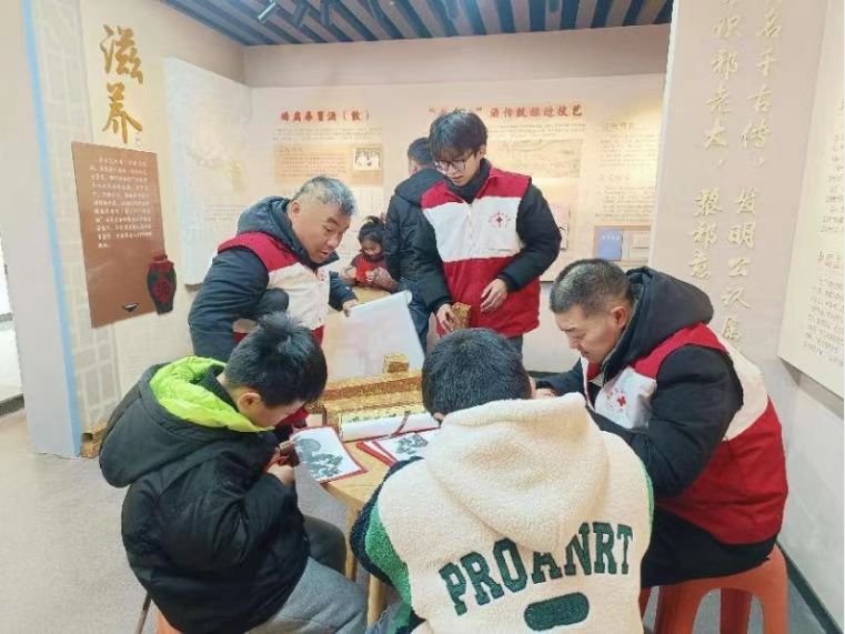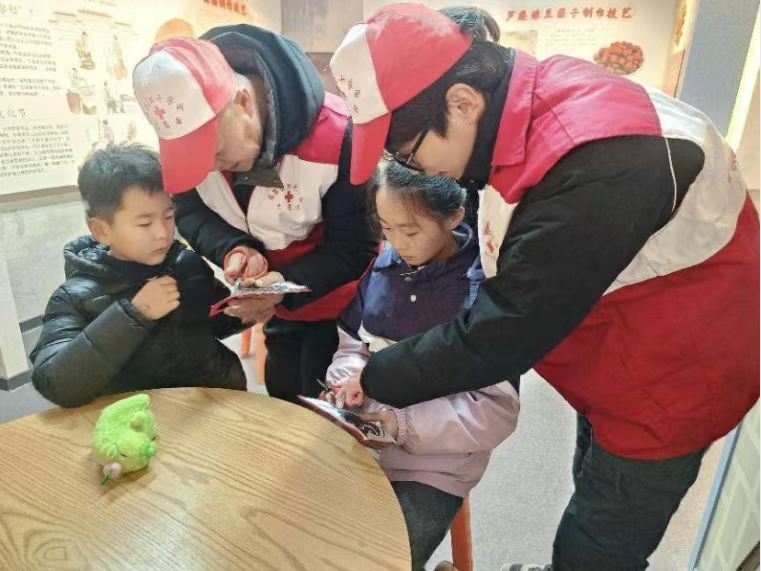 还有同学投身于传统手工艺传承,与手工艺者一起教小朋友剪纸。他们从最基础的剪纸方法开始,耐心讲解每一个步骤。一位参与活动的小员工兴奋地说:“大哥哥教得特别好,我学会了好几种新的剪纸技巧,以后我也要好好练习。”在教授剪纸技巧的同时,还讲述了许多关于剪纸的历史故事和文化内涵,让孩子们在潜移默化中加深了对剪纸艺术之美的理解。孩子们在实践中充分发挥想象力,创作出了一幅幅精美的剪纸作品,亲身感受到了剪纸艺术的独特韵味。陪同参与学习的家长表示“这些亲手剪出来的手工艺品比买来的更有意义。”