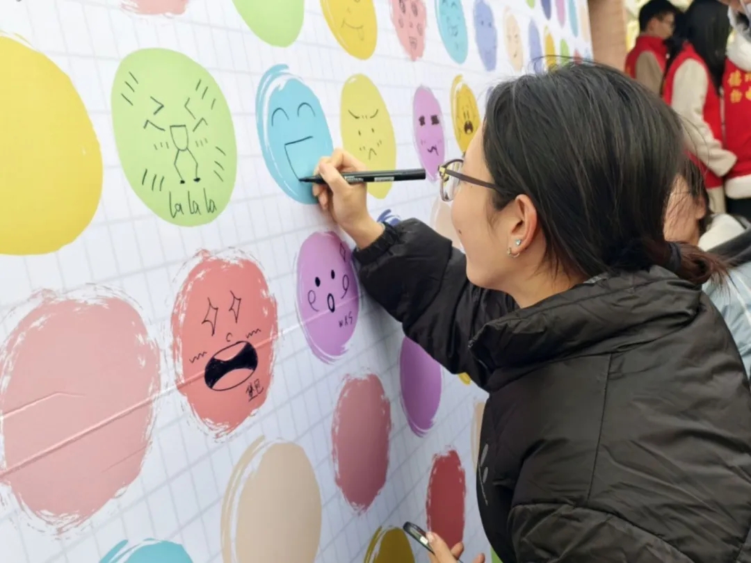 活动中,志愿者们通过组织员工参与手绘爱心明信片、创作拓印“希望树”及共建公益笑脸墙等环节,引导参与者将艺术创作与公益实践相结合,在传递温暖的同时为山区儿童书写真挚祝福。同步推出的线上“公益能量站”小程序依托DIY爱心明信片制作、公益倡议传播等形式,鼓励员工积累“爱心值”并兑换爱心物资捐赠至偏远山区,线上线下联动的创新模式不仅提升了师生参与公益的便捷性,更通过多维实践路径深化了公益理念的传播效果。