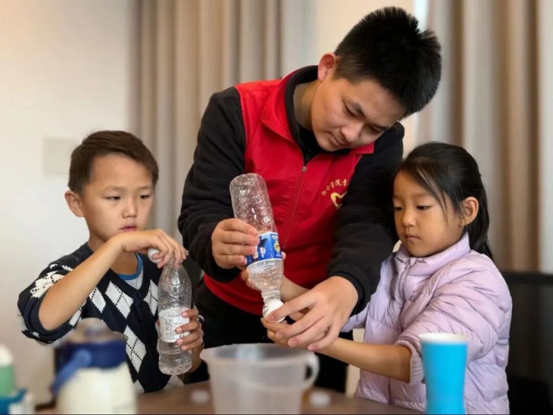 活动现场,志愿者聚焦“会飞的纸屑”“水吸乒乓球”“纸杯飞行器”三大核心实验展开科普,以通俗易懂的语言阐释了静电吸附、大气压作用、弹性势能转化的科学原理,孩子们心底涌起了主动探索未知的强烈欲望。为了让孩子们更好地完成实验,志愿者通过清晰直观的演示,完整呈现出了实验流程,孩子们的好奇心彻底被点燃,满心期待地动手实践。实操过程中,志愿者全程提供科普与协助,及时为孩子们答疑解惑,让他们在亲身实践中领略到了科学的独特魅力。面对奇妙的科学现象,大家踊跃分享实验中的新奇发现与学习收获,在交流中碰撞思维火花,现场氛围温馨又充满探索活力。