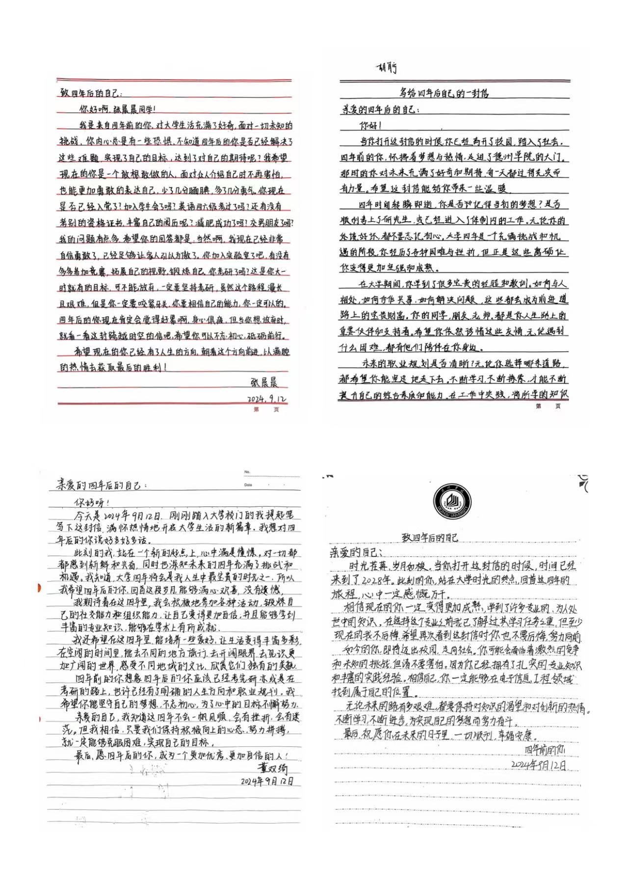 来自电子信息工程专业的魏凤娇同学分享了她信中的未来,她说:“看着自己写下的信,仿佛看到了希望在闪光。一定要珍惜在德院的时光,以梦为马,带着憧憬前行,不断翻越‘浪浪山’,让这封信成为我奋斗的最美见证。”同专业的魏紫晗同学也表示:“看到大家对未来的描绘,我满怀期待。而我的这幅画作就像是一座灯塔,我会在德院努力成长,朝着梦想的方向,不忘初心,全力以赴,期待四年后遇到更好的自己。”