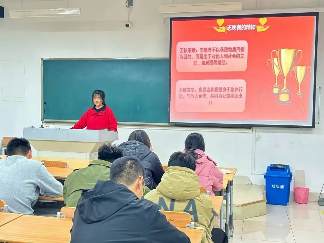 活动中,主讲人围绕志愿服务理念、志愿服务活动实施等方面展开宣讲,并结合自身经历,讲述参加志愿服务活动心得体会和独特见解,鼓励同学们用实际行动为志愿服务贡献一份力量。同时,主讲人呼吁同学们认真学习先进典型,在服务社会、助人为乐中提升人生境界,积极投身到志愿服务活动中。