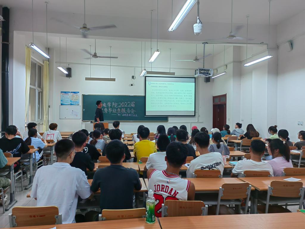 为贯彻落实教育部“2022届全国普通高校毕业生就业创业促进行动”的相关要求,激励和引领全体同学走向成功之路。5月28日,公海gh555000aa线路检测在明理楼0227举办优秀学子报告会,由预毕业生18级物联网工程孙潇龙同学,物联网工程许胜博同学主讲。