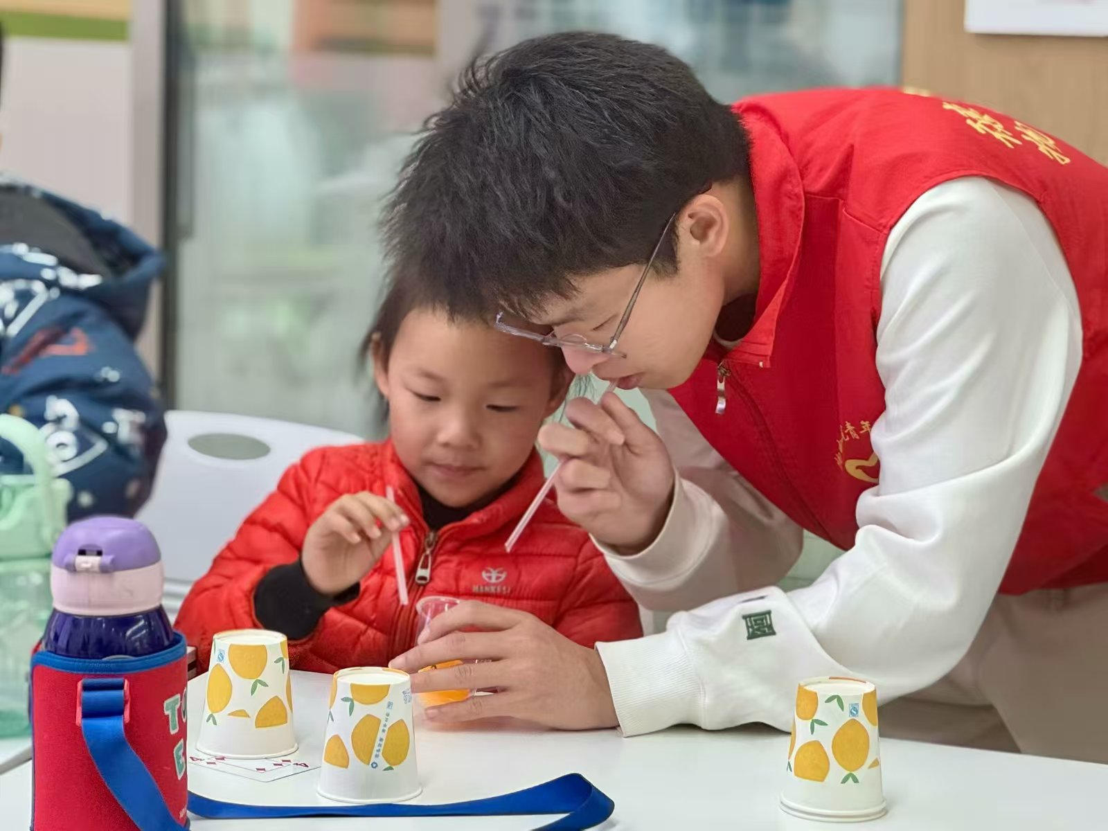 活动现场,“惯性纸杯”“隔空救援”“千里引水”等系列实验轮番上演。志愿者们以生活化道具为载体,将抽象的科学知识转化为可触可感的趣味互动,带领小朋友们亲手操作实验,体验科学探究的乐趣。活动采用"原理讲解+动手实践"的教学模式,引导孩子们在操作中理解科学本质。家长们纷纷表示,这种寓教于乐的方式既培养了孩子的逻辑思维,又点燃了科学探索热情。