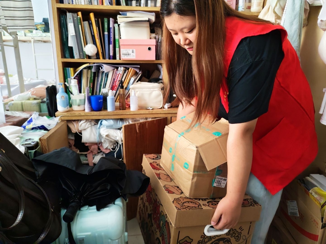 活动当日,志愿者们热情高涨、迅速行动,走进毕业生宿舍,以实际行动为学长学姐送上温暖关怀。志愿者们分工明确,有的负责协助毕业生整理书籍、衣物,有的帮助毕业生打扫宿舍卫生,还有的认真细致地将各类闲置物品进行分类。毕业生们积极配合,主动提出需求,分享物品背后的故事,将不再需要的书籍、衣物等物品捐赠。大家齐心协力,让宿舍焕然一新。
