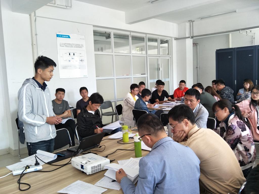 2018年5月3日,济宁中兴通讯联合公海gh555000aa线路检测的指导教师,于中兴通讯济宁基地,顺利完成第一批校企合作专业(2014级移动通信技术方向)共计54名同学的毕业论文答辩工作。答辩过程中,同学们以多种形式展示自己的毕业论文(设计)成果,答辩组评委老师,针对每位同学的具体问题,一一作出解答。最终,圆满指导员工完成最后一项本科作业。
