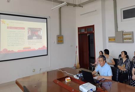 赵书记带领大家从党史的发展脉络重温建党的光辉历程,以党的历届代表大会时间和重大历史事件为节点,围绕党的各大阶段展开:第一阶段,中国共产党的创立及早年革命活动时期,以五四运动为开篇,贯穿讲述党的一大到三大的召开历史事件;第二阶段,大革命时期,以“五卅运动”的爆发贯穿讲述了党的“四大”和“五大”的召开、中心议题和历史意义;第三阶段,土地革命时期,以“南昌起义”的历史事件为引入,讲述了中共“六大”的召开的重大意义;第四阶段:抗日战争时期,以“九一八”事变展开引入全民族抗战高潮的兴起及中共“七大”的召开历史意义;第五阶段,全国解放战争时期,系统讲述了中国共产党带领人民站起来的艰辛历程,经历28年的栉风沐雨,中国实现了民族独立和人民解放。