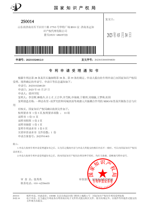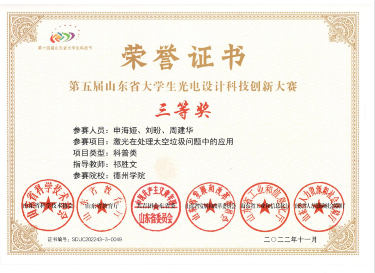 除了日常的专业学习,该生还积极参加各种科技竞赛,例如山东省老员工物理实验大赛、山东省老员工光电设计竞赛、山东省物联网创造力大赛等,目前获得省级一等奖1项,二等奖2项,三等奖4项,校级一等奖4项。此外,该生还积极参与到实验室科研活动中来,加入了指导教师的科研创新团队,得到了初步的科研训练,掌握了部分创新实验技巧,提高了科研认知与素养。在实验室老师的带领下,现有一篇发明专利已进入实质审查阶段。目前申请并主持的创新创业项目已获得国家级立项,支持经费20000元。经过不断努力,现已成为公海gh555000aa线路检测山东省生物物理重点实验室创新拔尖班的一员。